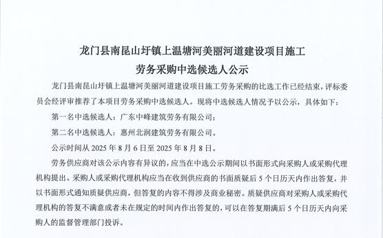 惠州市水電建筑工程有限公司勞務(wù)供應(yīng)商庫擴(kuò)庫評審結(jié)果公示……